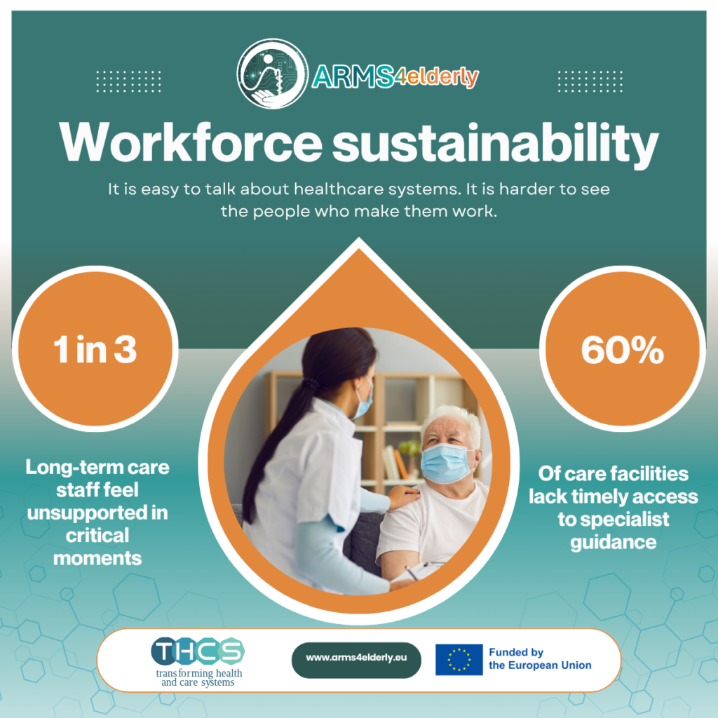 Healthcare sustainability conversations often focus on infrastructure and funding. But systems are carried by people. Long-term care professionals frequently operate under pressure, making complex decisions with limited specialist access. By creating structured hospital–care facility collaboration, ARMS4elderly supports professionals at the moment decisions matter most. Resilient systems are built by reducing isolation in responsibility. Support the workforce — and you strengthen the entire care pathway.